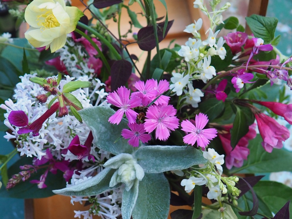 I have lovely lilac scented jars of flowers ready for your table. Containing a mix of freshly picked flowers and foliage from my garden they bring calm, joy and beauty to any occasion.