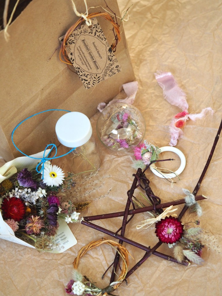 Comes wrapped in tissue paper in a paper bag with gift label + bonus mini wreath. No two are the same so photo gives you an idea but actually look of contents will vary. If you would like specific colours or colour combinations please just ask and I’ll do what I can to accommodate your request.