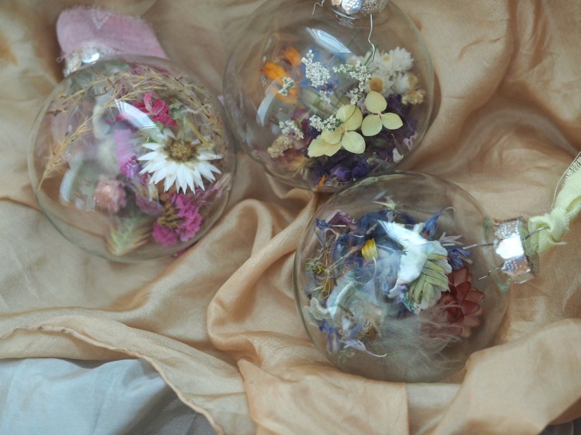 Each ornament is unique and lovingly made with flowers grown by me from seed – carefully nurtured all summer long then harvested, dried and added to my designs. Wreaths and stars are woven from suitable garden material and the flowers are added without the use of plastic or wire making each one compostable when it reaches the end of its life after years of enjoyment.