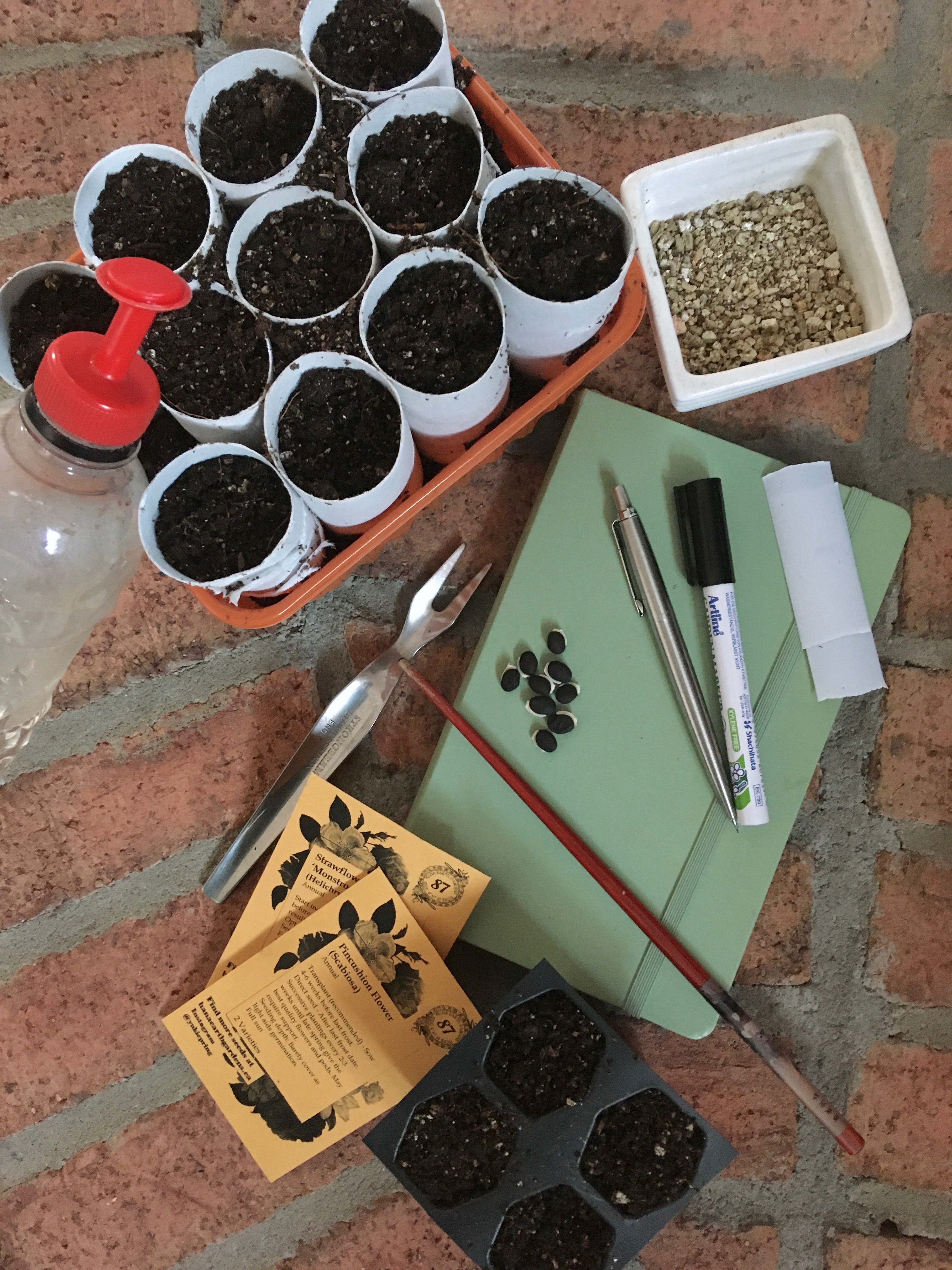 • watering bottle with a fine spray (I got mine from Lee Valley Tools)