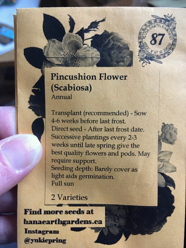 From the information on the packet you will find when to sow your seeds and how. These Pincushion flowers I am starting now 4-6 weeks before my last frost date. I am sowing one seed per cell and barely covering with vermiculite as they need light to germinate.