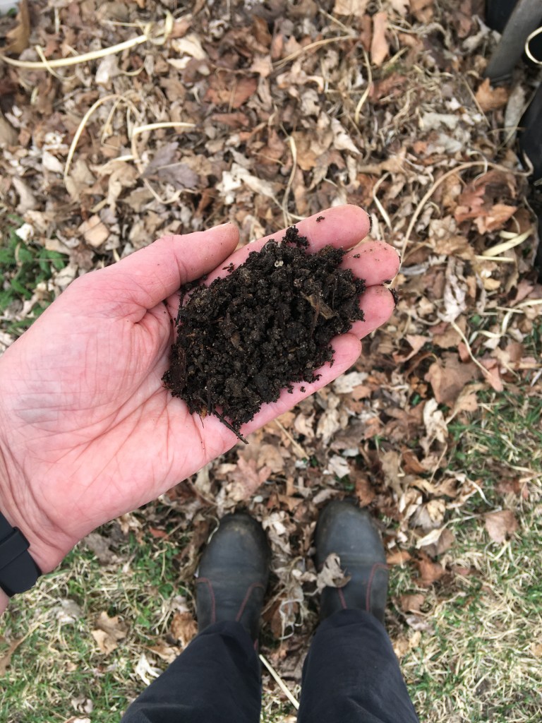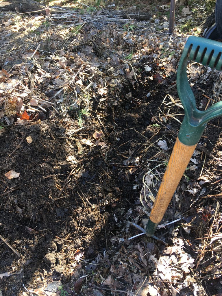 Digging down through last years leaf pile