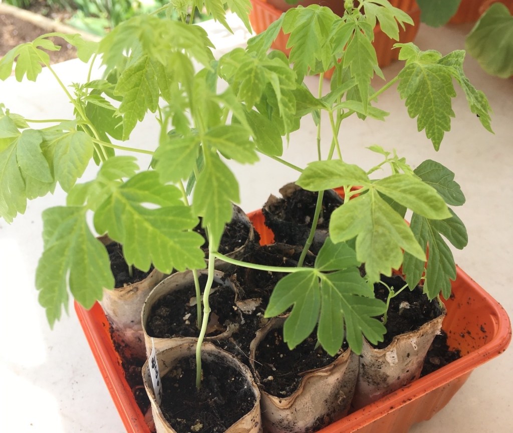 Love-in-a-puff climber seedlings in cardboard tubes