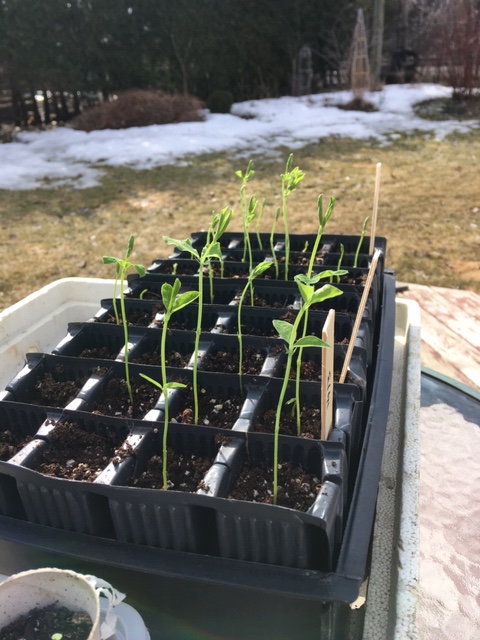 The seeds started inside under lights back in mid March are putting on growth, although I have had a problem with some damping off and fungus gnats this year. There are always challenges so if you are having problems starting seeds just try again!