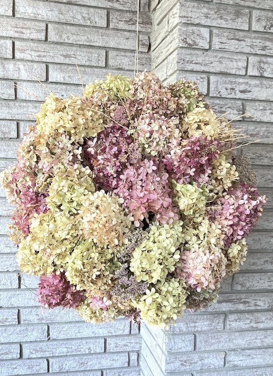 On their own in a vase, mixed in a dried bouquet, on a dried wreath, part of a flower ‘cloud’ or on their own in my ‘hydrangea disco ball’.