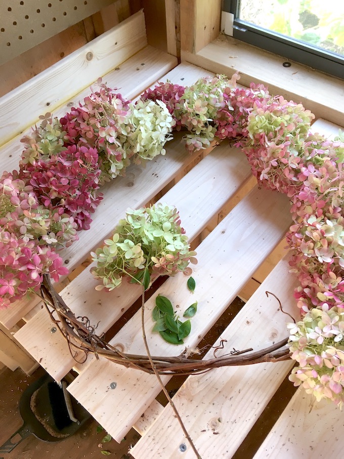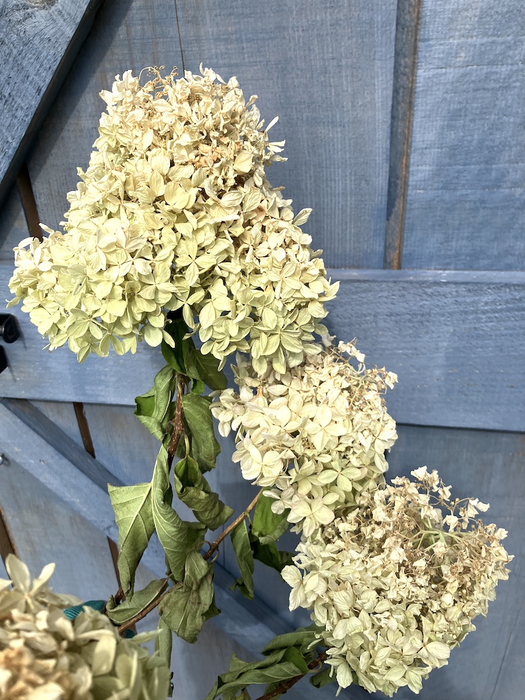 If you have been following me for a while you will know how much I love my huge Hydrangea paniculata “Limelight” bushes and all the uses I put the dried flowers to.