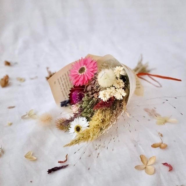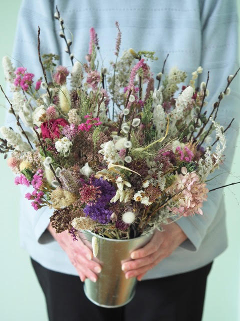 When your dried flowers come to the end of their life or you grow tired of them, I would suggest having some fun and playing around with them. Save any stems that are still looking good and make into little bunches to attach to gifts, use as hair decorations or mini buttonholes. If you are really creative you can rearrange a few stems in a vase and get a whole new look!